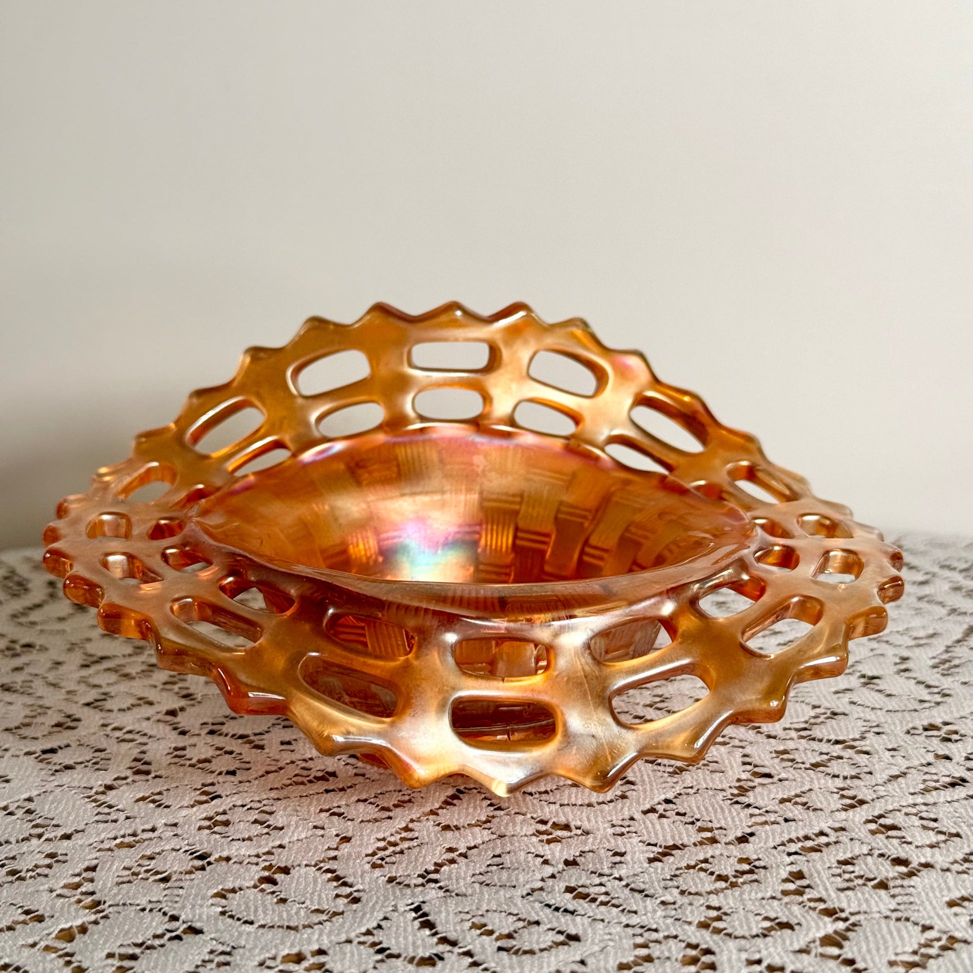 Fenton Marigold Carnival Glass Bowl – Open‑Lace Basket