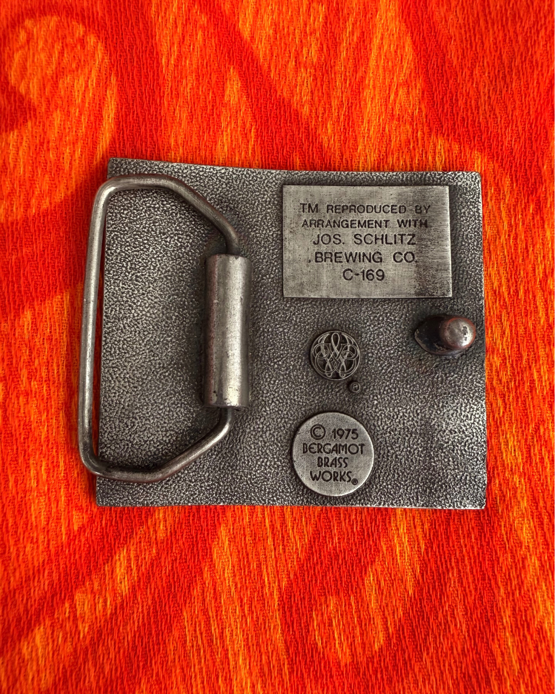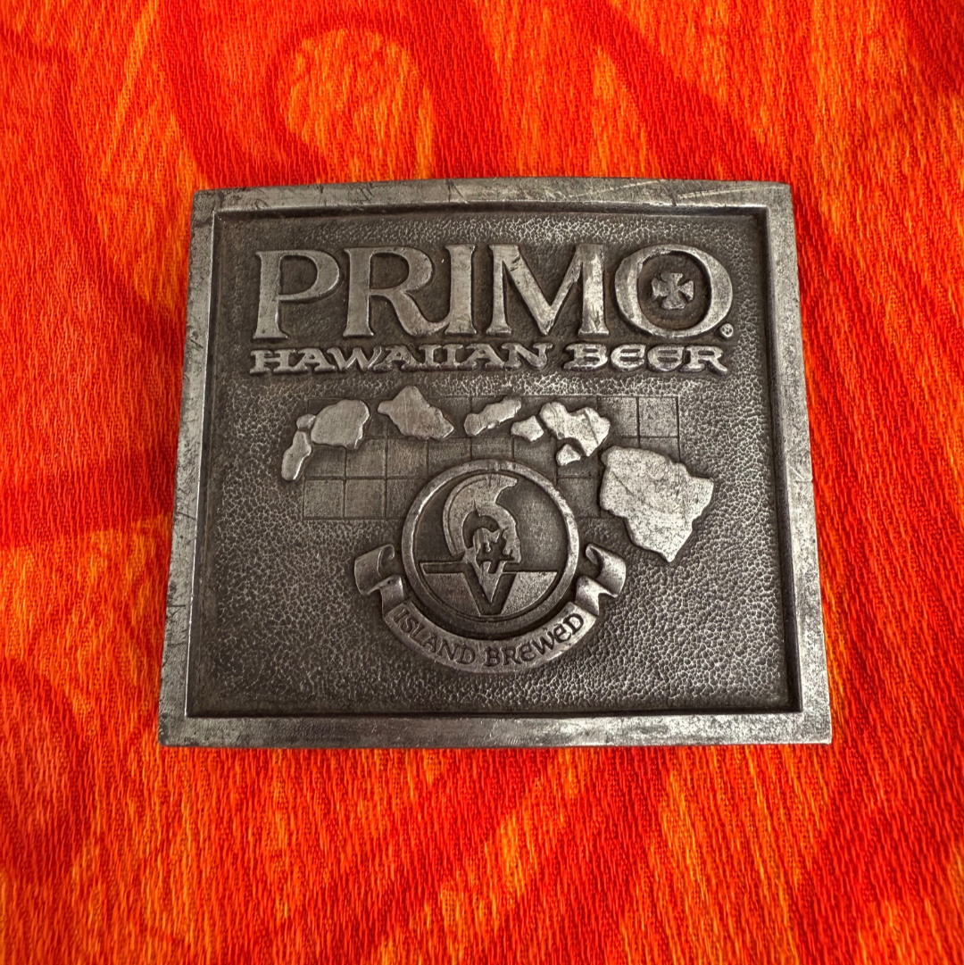 Get ready to "suck 'em up" Hawaiian style with this one-of-a-kind Primo Hawaiian Beer belt buckle! Crafted from solid brass and stamped back in the groovy year of 1975, it’s got some serious heft—like a tiki cocktail in your pocket! Aloha to the perfect gift for any Vintage Primo enthusiast! It shows just a pinch of wear, but hey, that’s just the charm of a classic!