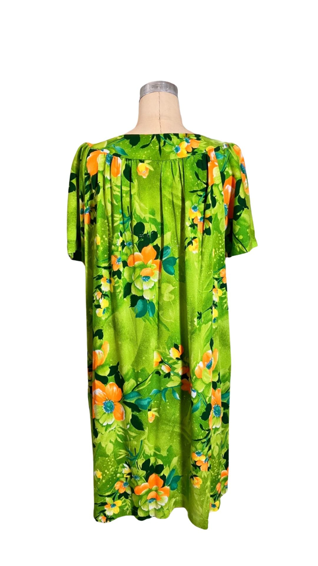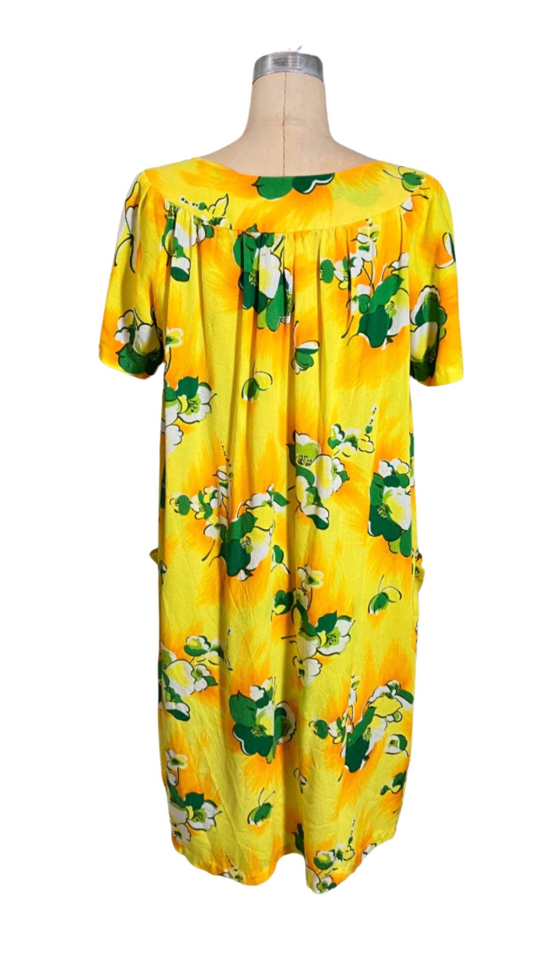 Acrylic barkcloth yellow and green muumuu @ $95 each - volup